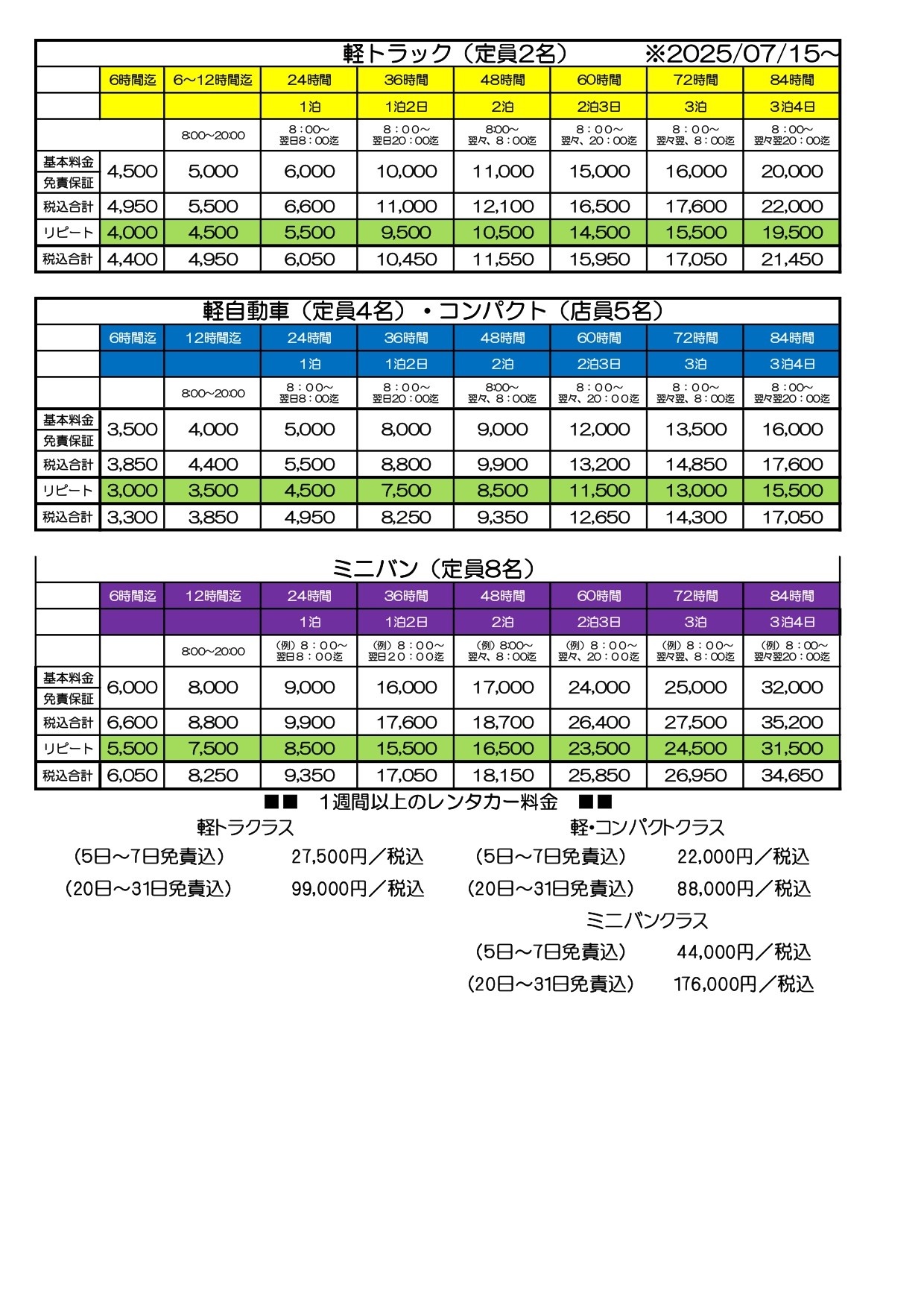 レンタカーの料金